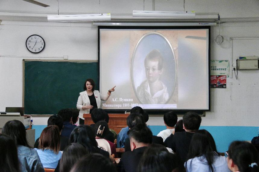 普希金,这位被誉为“俄国诗歌的太阳”的伟大诗人,用他的诗歌照亮了俄国文学的天空。叶莲娜·马科耶娃从俄罗斯人的角度为同学们全方位解读了普希金,随着她的讲述,同学们仿佛来到了19世纪的俄国,走近了普希金,从他的童年到他的诗歌,再到他与俄国社会的密切联系。讲解中,叶莲娜·马科耶娃特别提到了普希金的代表作《假如生活欺骗了你》,并声情并茂地为学生朗读。