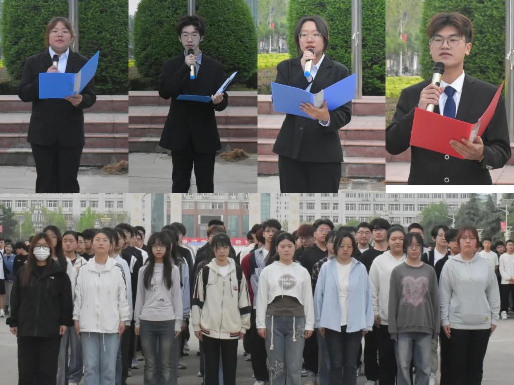 仪式上,学生代表们进行关于国家安全主题的朗诵。马雯静朗诵《国家安全是一张网》,阐明国家安全实质;闫高硕朗诵《守护和平之光》,讲述世界和平与国家安全的关系;张欣睿朗诵《国家安全,人人有责》,表达国家安全应落细落小落实,从身边做起;马康领诵《维护国家安全,共筑和谐家园》,与同学共同领会增强国家安全意识和素养的重要意义。