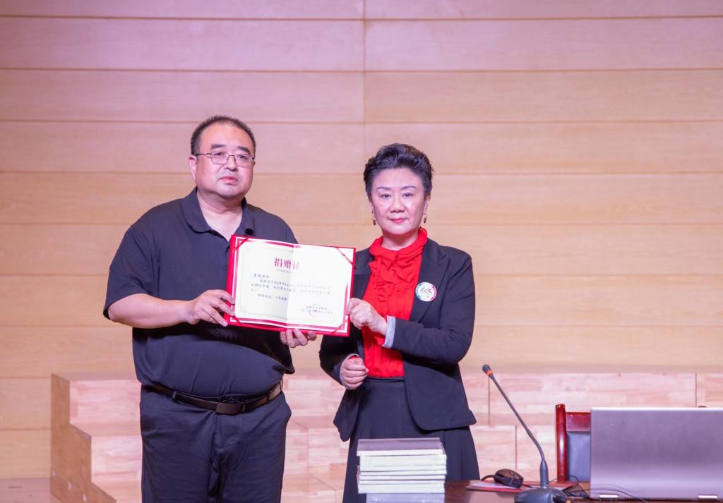 讲座结束后举行了周玲教授赠书仪式,捐赠书籍《威尔第、普契尼室内乐声乐作品集》《意大利语语音》音乐专业教材、《文化搭桥、歌声传情、重走丝路》及示范演唱光盘等学术资料,殷晓克向周玲教授颁发捐赠证书。