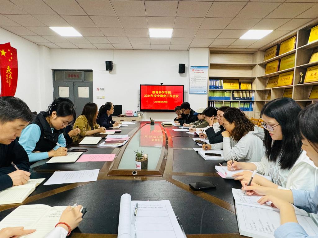 4月29日上午,教育科学学院在知新楼2218会议室召开校园安全稳定工作会议,学院全体处科级干部、实验室主任、办公室负责人、辅导员参加会议。会议由党总支副书记马雷蕾主持。