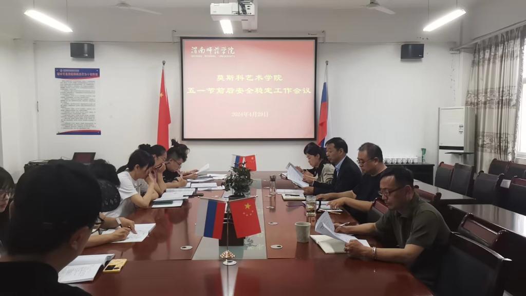 4月29日,莫斯科艺术学院召开五一假期前后安全稳定工作专题会议。进一步做好校园安全稳定工作,保障师生“五一”假期安全,全面落实校园安全责任,消除校园安全隐患,切实维护校园安全稳定。学院处科级干部、实验室主任、全体辅导员参加会议,会议由学院党总支书记孟波主持。