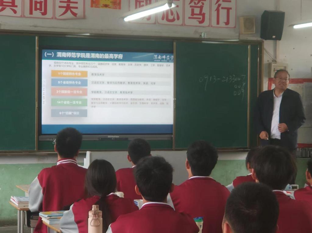 4月24日,人文学院院长赵前明、副院长雷炳锋、教学秘书张钧涛一行前往韩城市象山中学、西庄中学和新蕾中学进行招生宣讲。