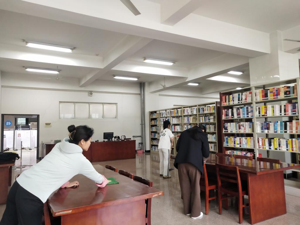 图书馆积极组织、明确责任,全馆工作人员认真负责、快速行动,和学生志愿者一起对书库、自习室、办公室等场所进行了全面整理和打扫。经过大家的辛勤劳动,图书馆环境焕然一新,书架洁净、图书整齐、窗明几净,无卫生死角。