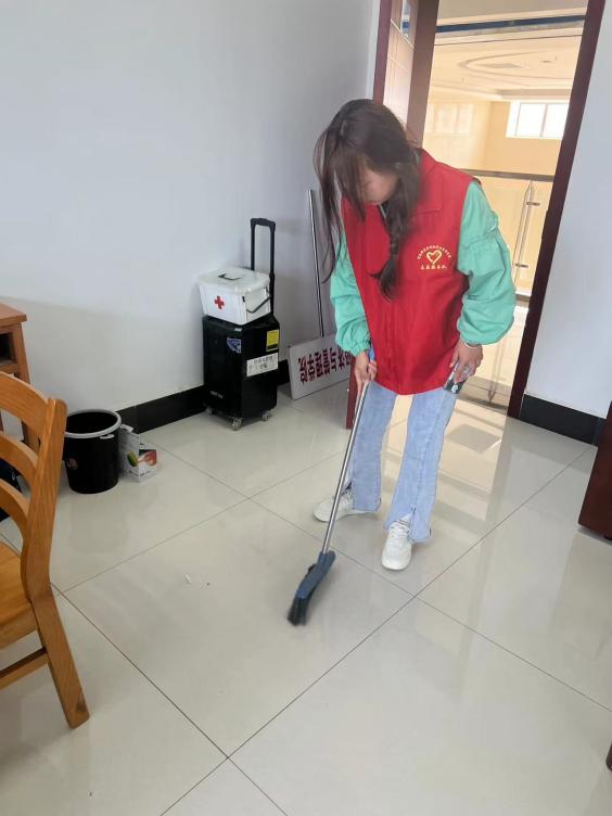 在办公区域,大家分工合作扫地、拖地、整理办公用品等,使室内干净整洁,地面无污渍、无纸屑、无杂物,办公环境焕然一新。
