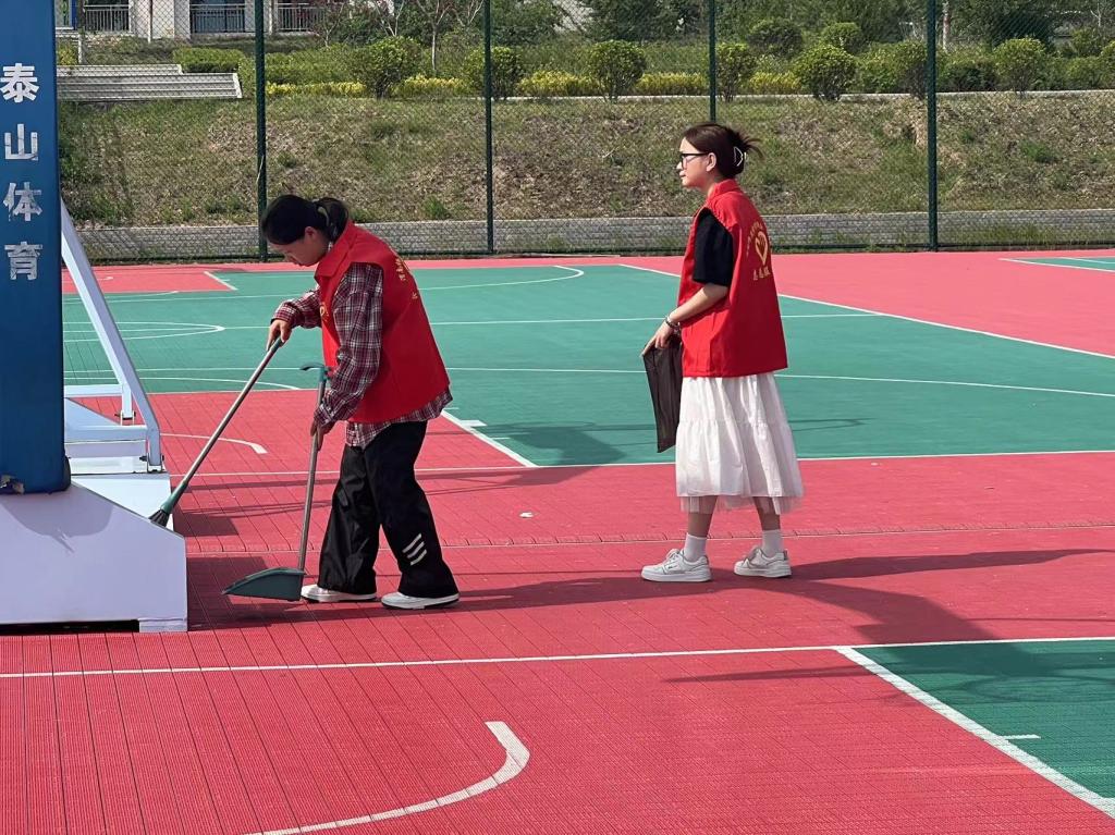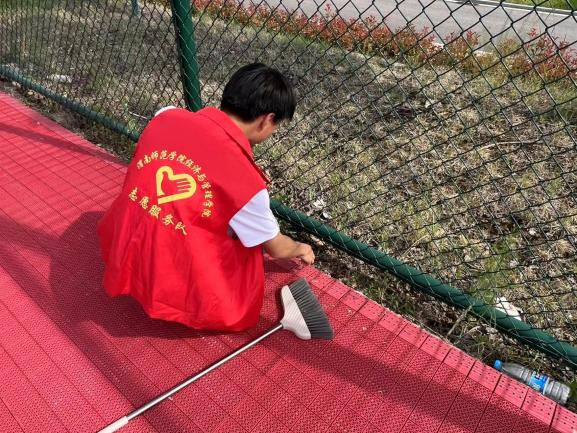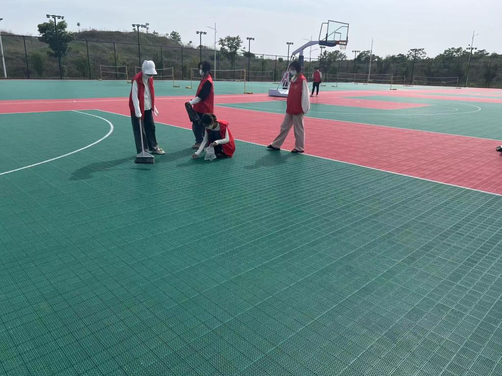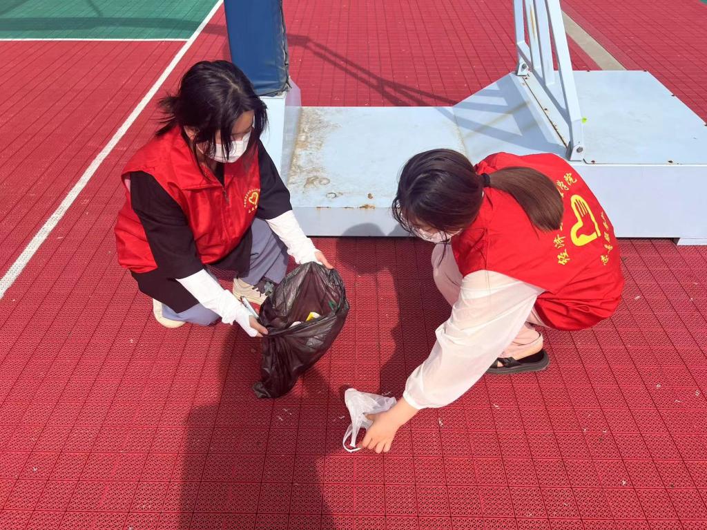 学院师生积极投入到大扫除活动中。大家分工合作、团结一心,对学院多处地方进行了认真细致的清扫。在学院包联区域的篮球场,大家一丝不苟的捡拾地面的垃圾,沉积的灰尘被一扫而空,变得干净整洁。大家用自己辛勤的双手为校园创造了一道绚丽的风景线。