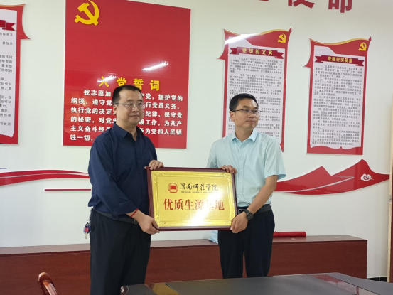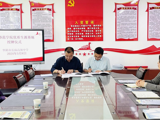 会前,宣讲团同岳庙高级中学领导开展了座谈交流,哈渭涛亲切问候了岳庙高级中学年级主任、我校优秀校友冯花莹,向校长张新强,副校长周福样、副校长李荣介绍了我校基本情况、办学特色、录取分数等相关情况。哈渭涛表示,共建优质生源基地是增进中学与高校协同育人的重要举措,既有利于两校的长期合作,也能够帮助学生明确自身发展方向,提高高考竞争力。最后,双方签订了渭南师范学院优质生源基地共建协议书,举行了优质生源基地授牌仪式,后续将进一步推动双方深入合作与交流。