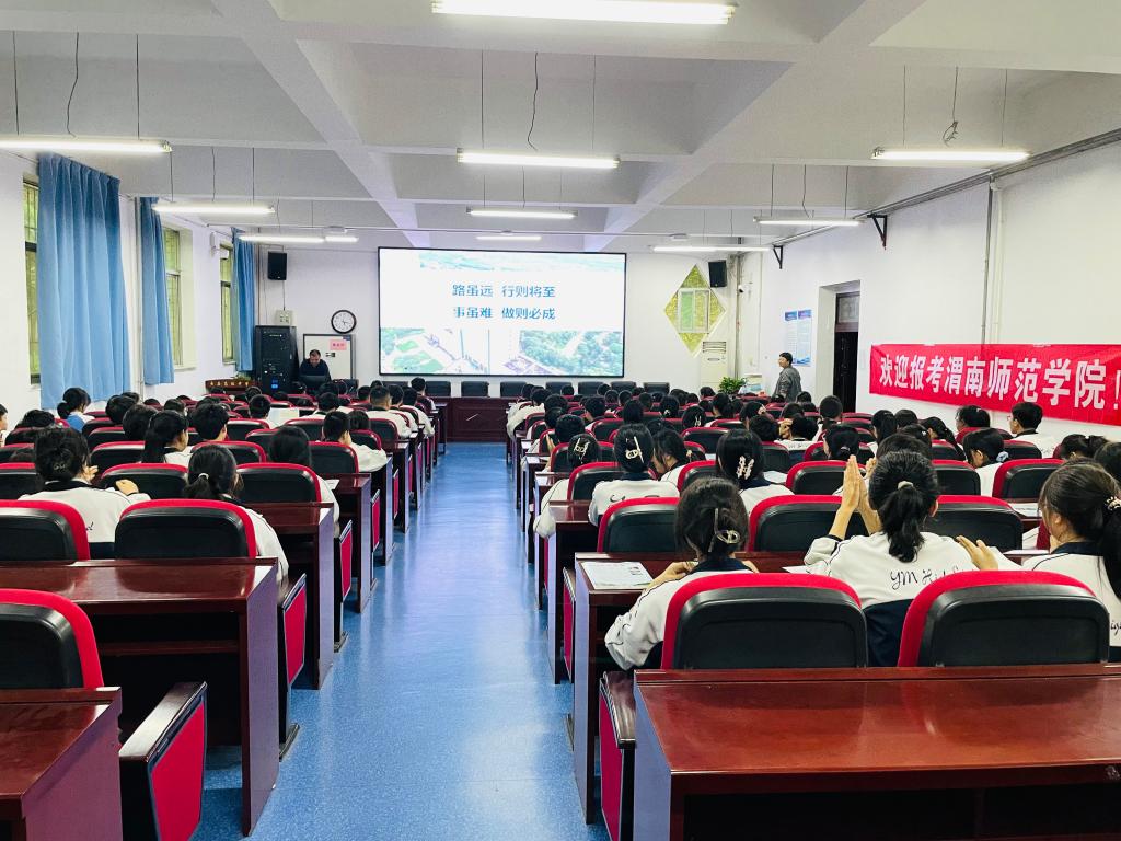 随后,宣讲团面向岳庙高级中学优秀学生开展专题宣讲会,向广大高三考生详细介绍了我校的招生政策、专业设置和育人成效。同学们积极热情咨询我校招生相关情况,各位老师就考生关注的热点问题,分别从高考专业选择、录取分数和位次,公费师范生、中外合作办学、专业就业前景、校园生活条件等方面进行了详细解答。