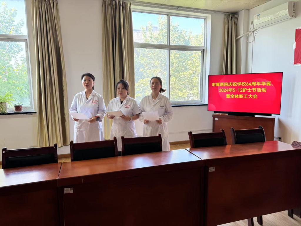 五月繁花似锦,朝气蓬勃。5月9日下午,为庆祝学校建校64周年及第113个“5·12”国际护士节,附属医院召开了以“发展护士队伍 优化护理服务 为学校高质量发展贡献力量”为主题的庆祝校庆暨2024年国际护士节特别活动。本次活动由王新英副院长主持,党支部书记王雅蓉、院长段楚雷和全体职工共同参加了活动。