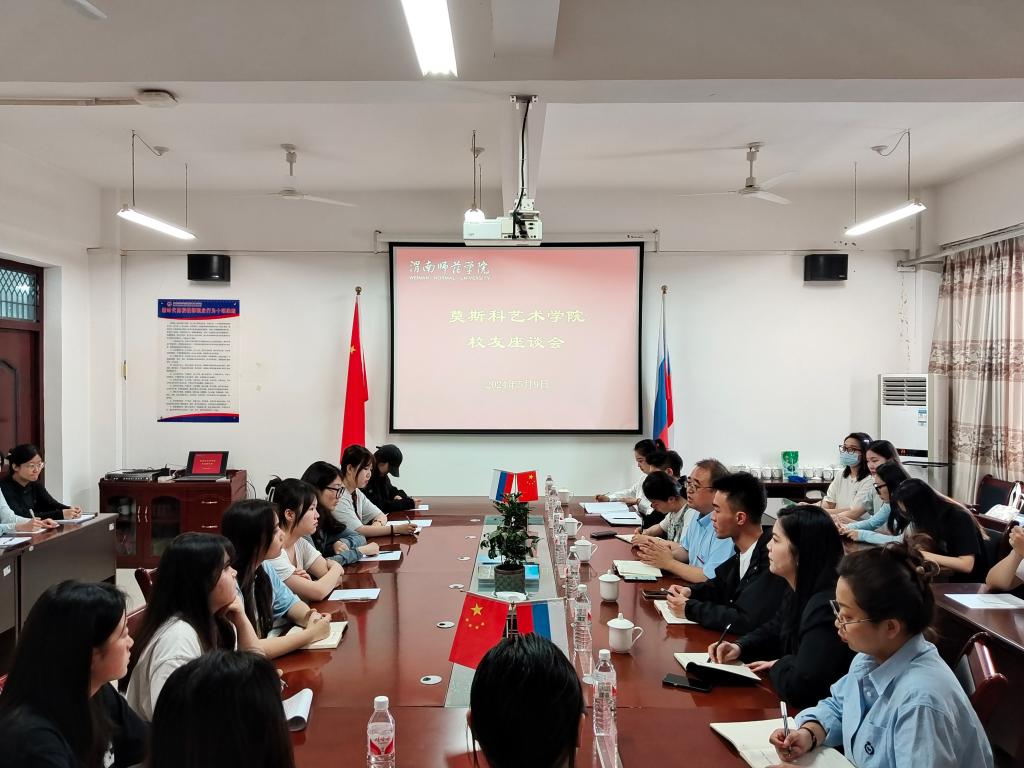 5月9日上午,在逸夫楼六层会议室召开莫斯科艺术学院校友座谈会。校友张思雨、杨浩玉,学院执行院长殷晓克、副书记叶晓燕、办公室主任高晶、学工办副主任段菲、辅导员师艺园、李思凡及学生代表40余人参加会议。座谈会由殷晓克主持。