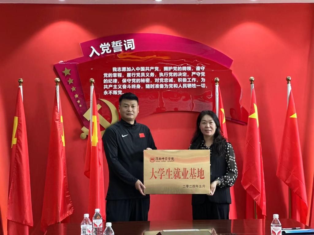 5月12日,体育学院党总支书记李春兰、副书记闵雄飞、办公室主任王斌、学工办主任、毕业班辅导员朱颖妮一行赴西安东方美术综合职业高中进行座谈交流,并与其签订共建大学生就业基地并举行挂牌仪式。
