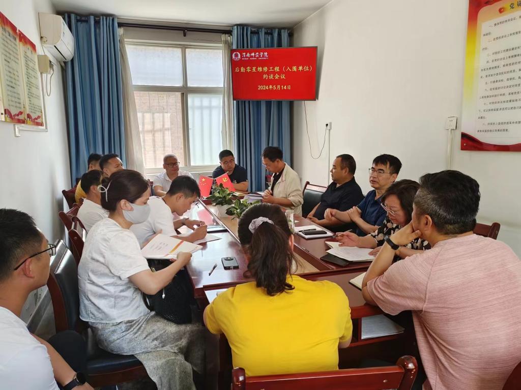 5月14日,学校召开后勤管理集中整治工作暨零星维修工程入围单位、维修材料供货单位集体约谈会议。