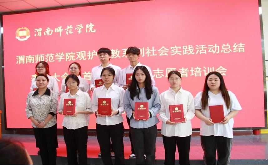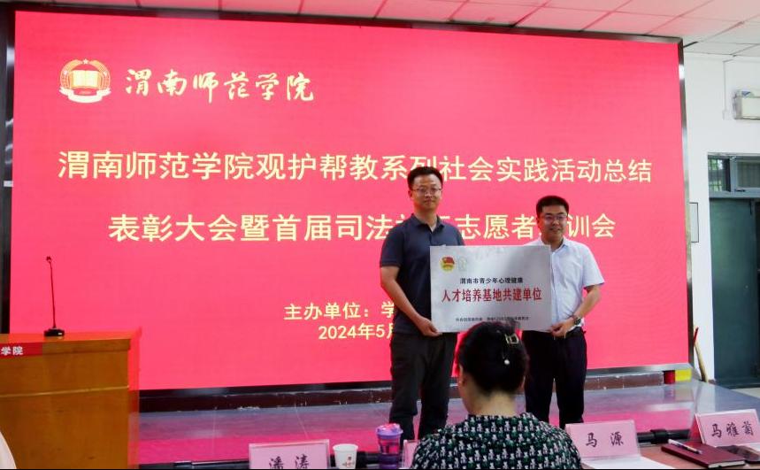 会上,举行了“渭南市青少年心理健康人才培养基地共建单位”揭授牌仪式。并对2023、2024年观护帮教系列社会实践活动优秀志愿者进行了表彰奖励。