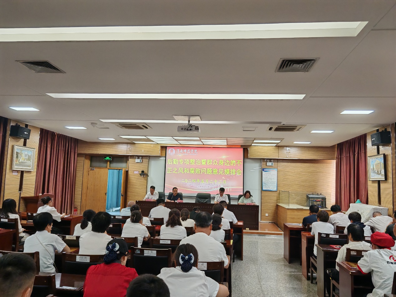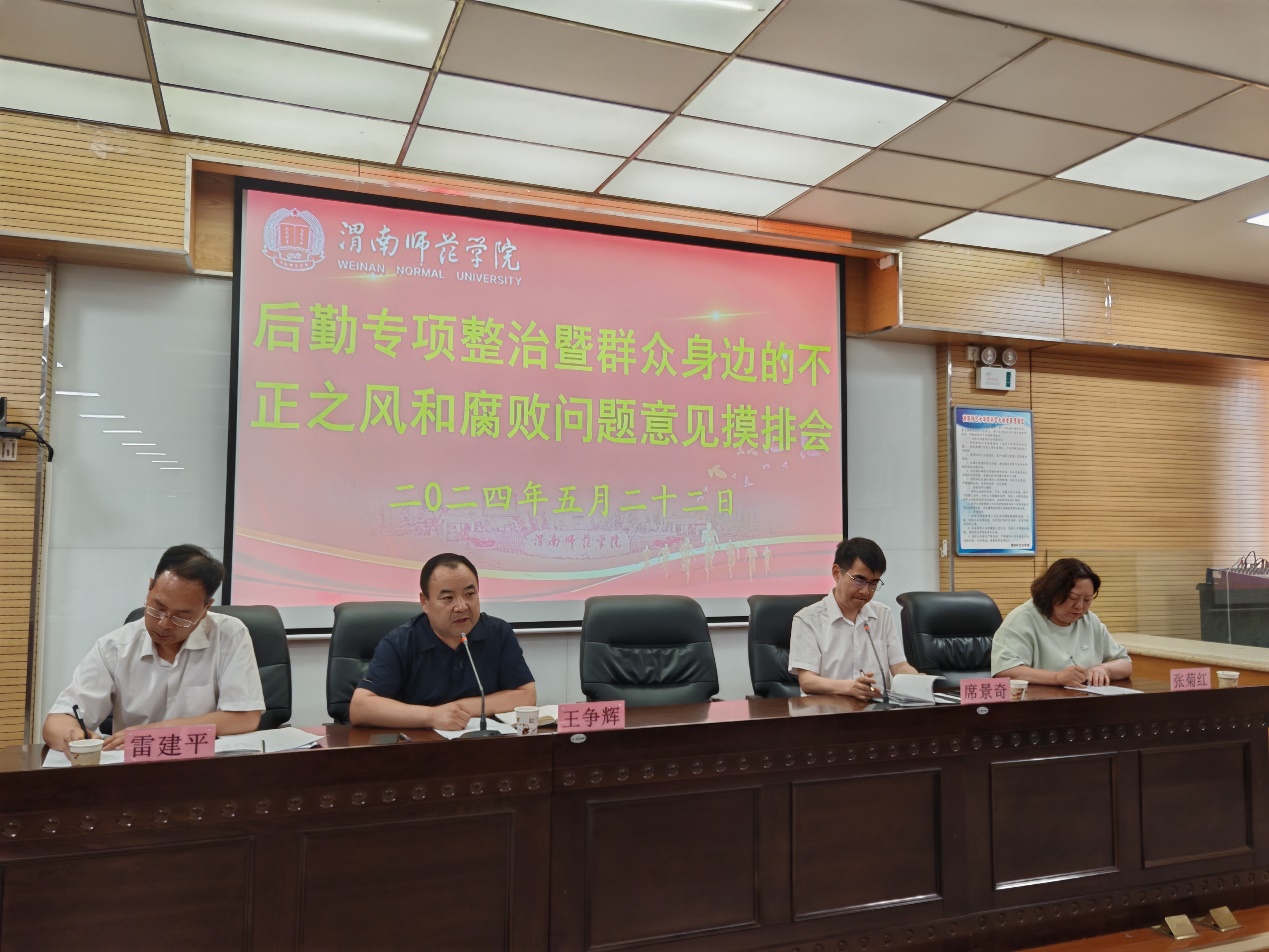 5月22日,后勤服务中心召开后勤专项整治暨群众身边的不正之风和腐败问题意见摸排会,后勤副科级以上干部和一线职工代表参加,会议由后勤服务中心主任王争辉主持。
