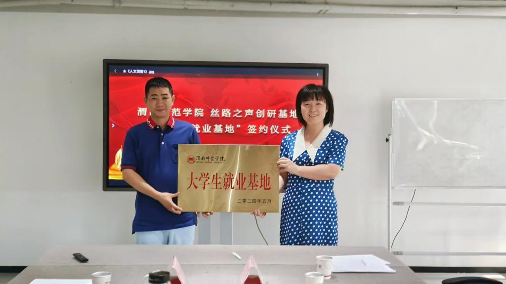 5月23日下午,人文学院党总支书记张晶、院长赵前明、学工办副主任孟子祥一行赴西安访企拓岗,与陕西新动向传媒股份有限公司旗下的丝路之声广播剧创研基地签订共建大学生就业基地协议。