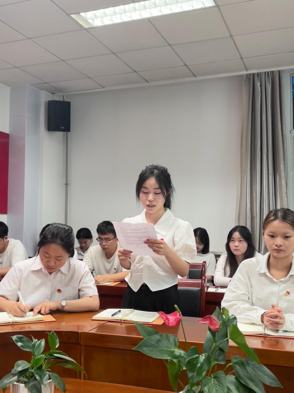 毕业生党员代表张来婷同学回顾了大学四年的学习、生活和工作经历,她表示,作为一名党员,要时刻发挥党员先锋模范带头作用,以身作则,率先垂范,用行动描绘新时代青年党员的志气、骨气和底气!