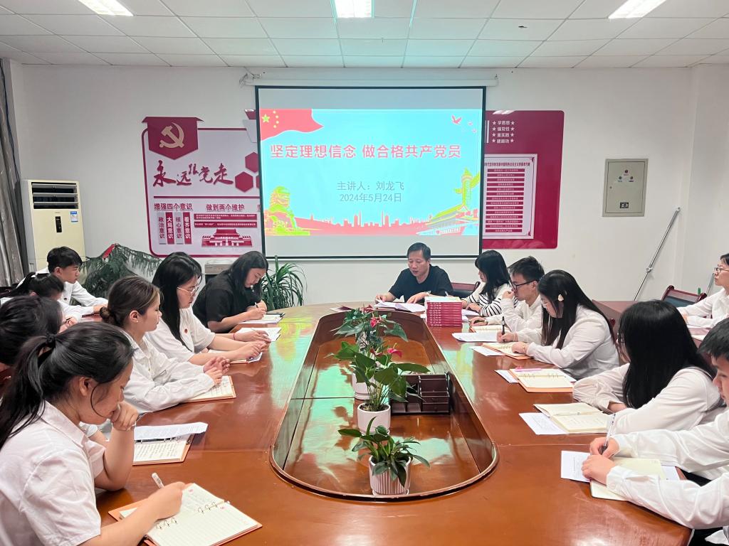 刘龙飞以《坚定理想信念 做合格共产党员》为主题,为即将踏上新征程的毕业生党员讲授党课。他深刻阐释了坚定理想信念的重要意义、共产党员应该拥有什么样的理想信念以及如何做一名合格的共产党员。他对毕业生党员提出了五点殷切期望:一是坚守理想信念,站稳政治立场;二是发挥带头作用,遵守规章制度;三是胸怀家国大志,奔赴星辰大海;四是苦练本领担当,建功伟大时代;五是不忘初心使命,始终心怀感恩。