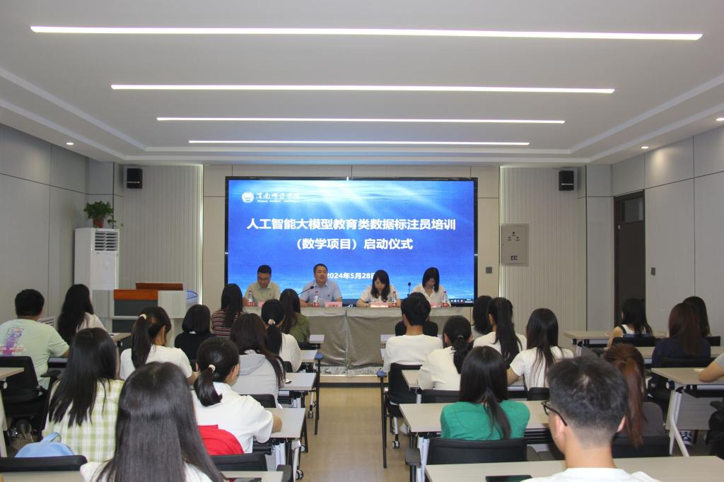 5月28日下午,我校人工智能大模型教育类数据标注员(数学项目)培训启动仪式在实验楼C区第一培训室举行。继续教育学院副院长苟鹏军,数学与统计学院副书记张菊梅,蓝云科信息科技有限公司总经理骆铎,数学与统计学院50余名参训学生参加了启动仪式。