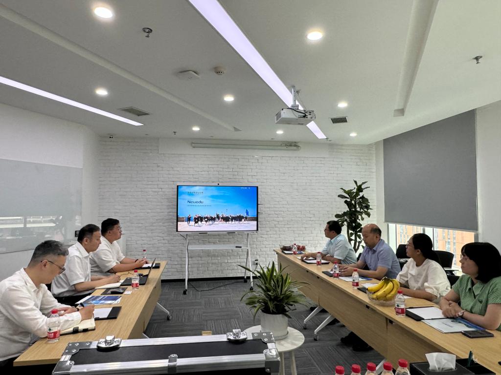 在东软教育科技集团西安分公司,高校西北区销售总监陈键对田超一行的到来表示欢迎,引导参观了东软展厅,详细介绍了东软集团在西北地区的核心业务板块。
