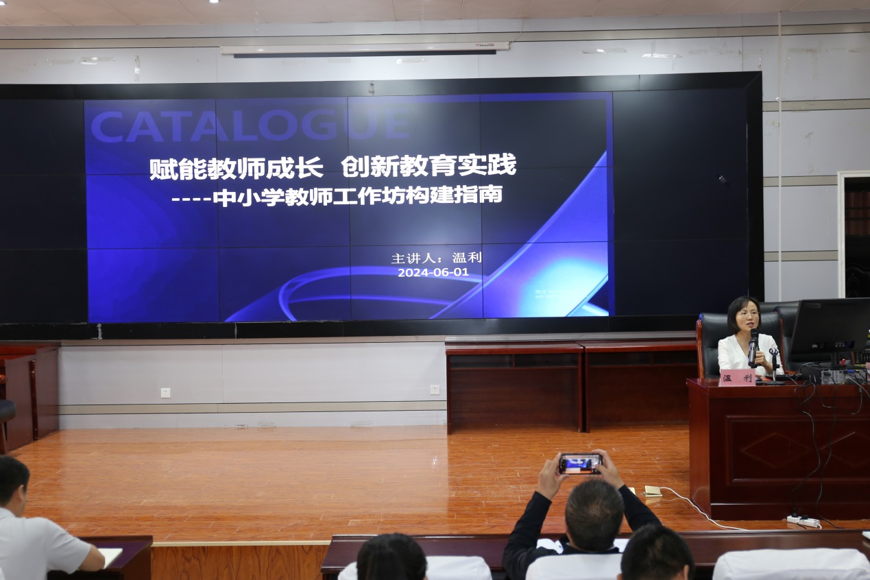 全国优秀指导教师、渭南初级中学年级主任温利等分别从网络研修任务布置、工作坊研修组织开展、送教进校目标驱动、示范课名师引领四个方面进行了培训活动。