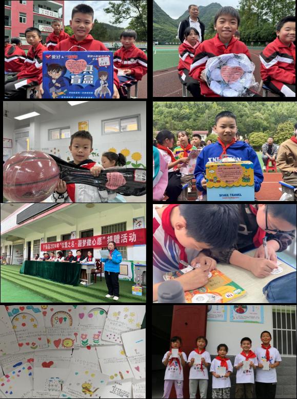 发放仪式上,宁强县团委领导与计算机学院师生代表为小学生发放了微心愿礼物和信件,表达了对孩子们的鼓励、支持与祝福。