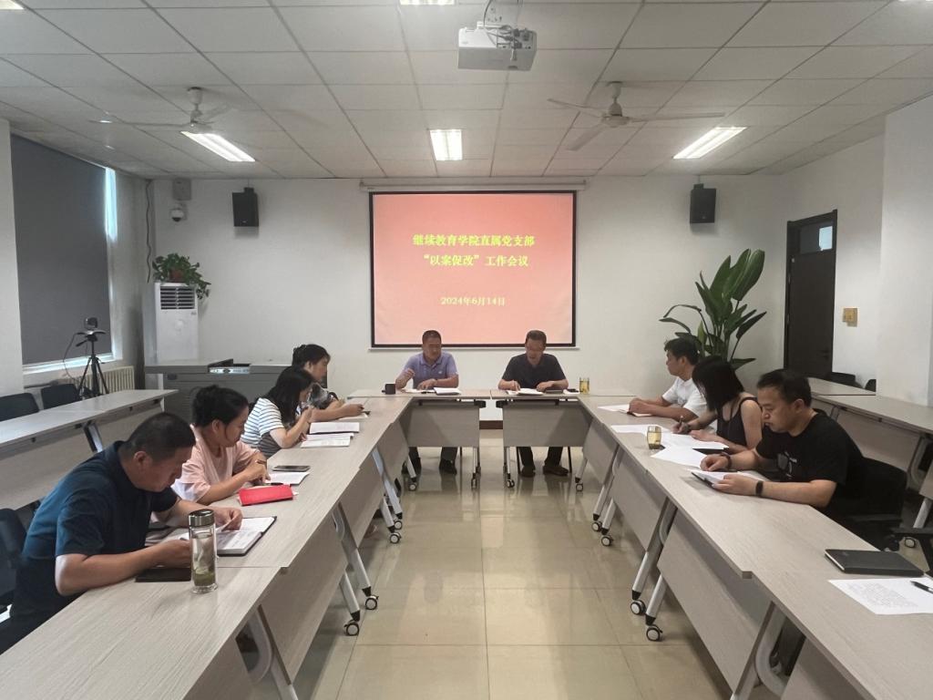 6月14日上午,继续教育学院直属党支部召开 “以案促改”工作会议,学院全体党员干部参加会议。直属党支部书记周德锋主持会议。