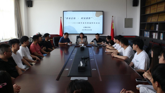6月20日下午,计算机学院召开“青春定格·时光剪影”2024届毕业生话别送祝福活动。党总支副书记张俊娜、副院长哈渭涛、毕业班辅导员及在校毕业生代表参加活动。活动由张俊娜主持。
