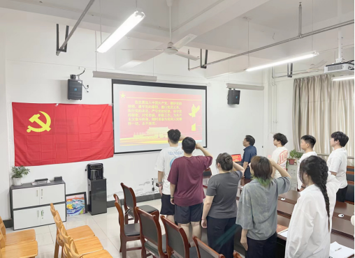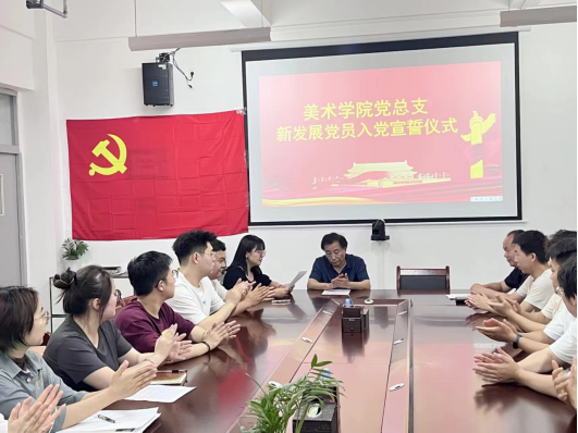 7月1日下午,美术学院党总支在教学楼二楼会议室举行2024年新发展党员入党宣誓仪式。党总支书记陈进卫、党总支副书记雷毅、美术系学生党支部书记赵普凡、设计系学生第二党支部委员张有旭参加,仪式由党务秘书张华主持。