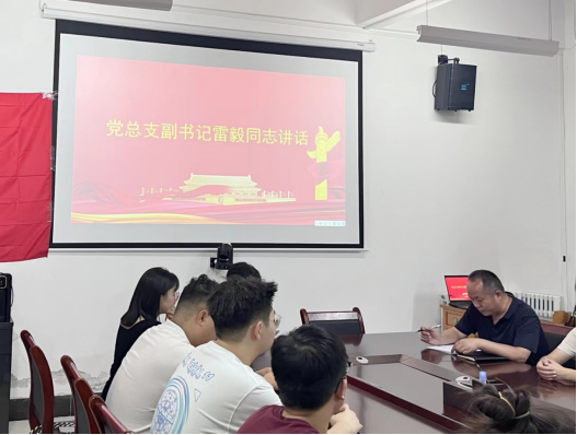 随后,党总支副书记雷毅以一名党员的理想信念和使命担当向各位同志们提出了几点要求,他说入党宣誓,是党员政治生命开始的象征,是非常庄重、严肃的事情,党旗代表着党,誓词概括了党对党员的要求,也概括了党员对党组织和党的事业应承担的政治责任,希望同志们要牢记使命、不忘初心,以良好的道德品质和社会责任感,做好党员模范带头作用。