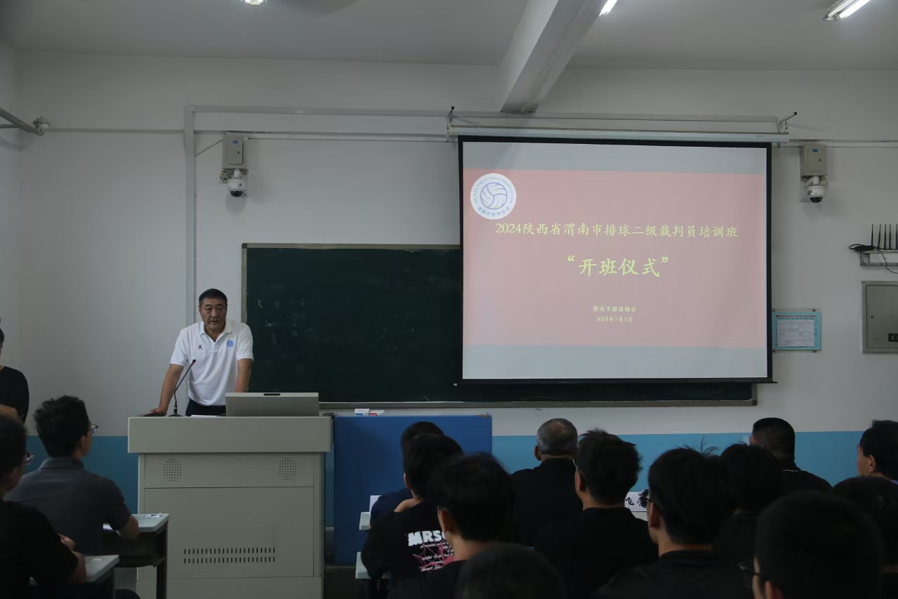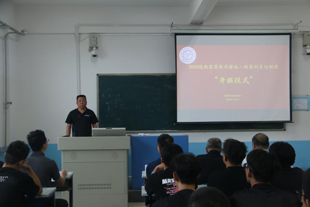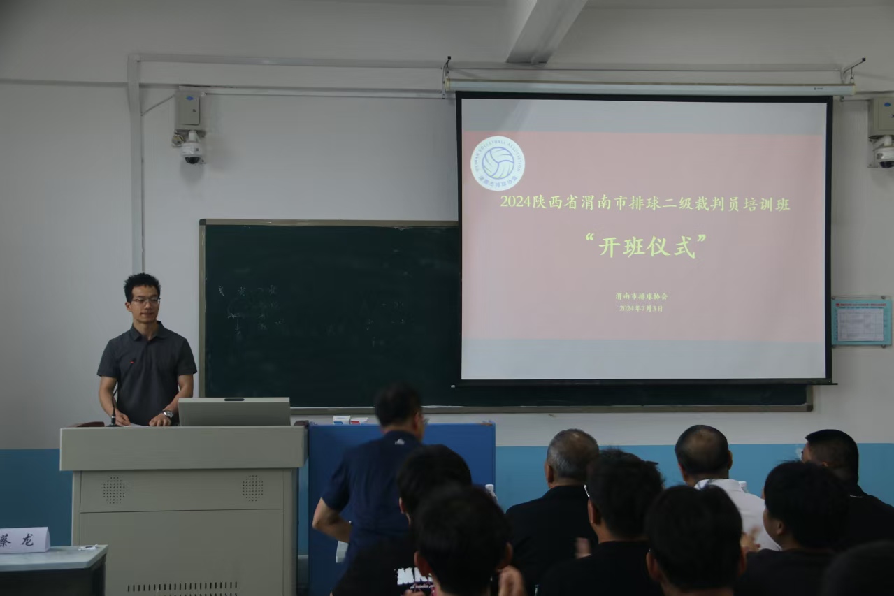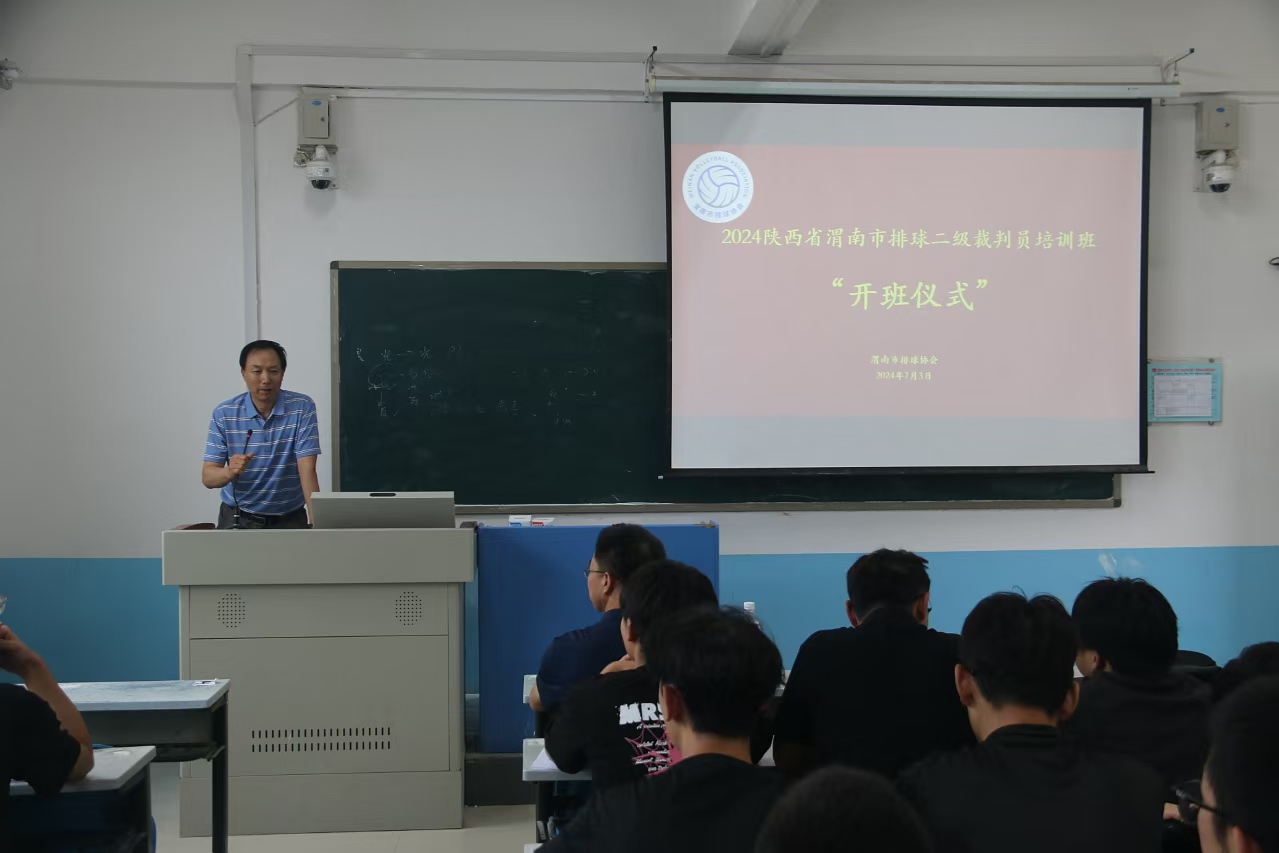 7月3日,2024年陕西省渭南市排球二级裁判员培训班在渭南师范学院正式开班,体育学院共选派68名学生参加了本次培训,仪式由体育学院副院长蔡龙主持。