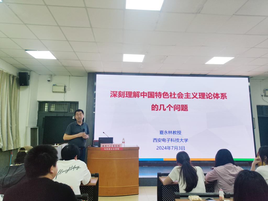 7月3日下午,西安电子科技大学马克思主义学院夏永林教授应邀为马克思主义学院师生作题为《深刻理解中国特色社会主义理论体系的几个问题》的报告。副院长单剑峰主持。
