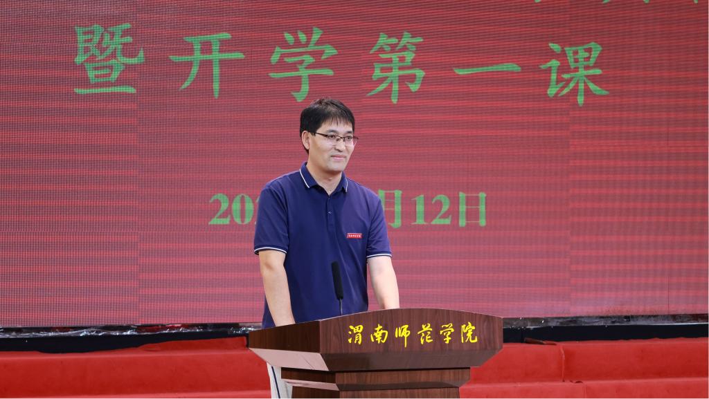 袁卫做总结讲话,并为新生讲授开学第一课。他向新生讲解渭南本地人文历史,回顾渭华起义党史故事,鼓励2024级新生怀揣远大志向,赓续红色血脉,传承渭华精神。他以平实朴素的语言饱含深情地激励新生要敢担当,强化责任意识;重实践,提升创新精神;重修身,涵养人文情怀;希望新生不负韶华,不负时代,锤炼过硬本领,勇担时代使命,书写属于自己的青春篇章。(通讯员 李雪荣 审核人 袁卫)