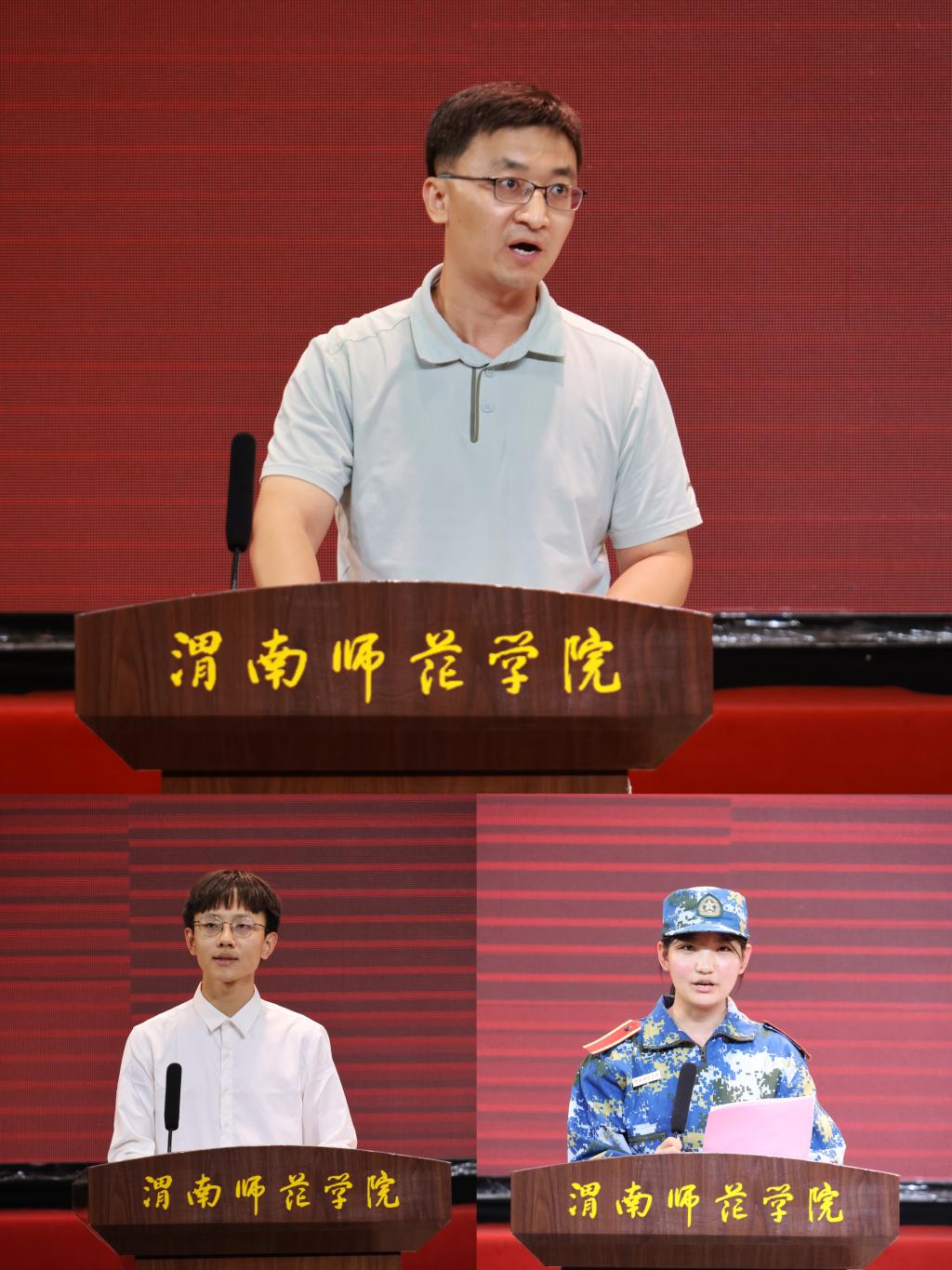 教师代表王凯勉励新生们要学会学习、学会做事、学会做人,希望新生们砥砺品德、增长才干,做到又红又专、全面发展,努力成为有理想、有本领、有担当的社会主义建设者和接班人。在校生代表王新瞳就自身经验总结,以无论何时,记住学习是大学的本职;无论何时,记得保持一颗探索初心与新生共勉。新生代表电信三校生241班韩依淼分享新生感受并代表全体新生表态在大学期间会明确目标,勤学善思;直面挑战,开拓创新;缪力同心,相互合作。