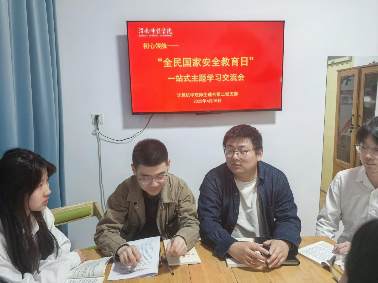 4月16日下午,计算机学院师生融合第二党支部赴“一站式”社区5号公寓开展全民国家安全教育日主题学习交流会。师生融合第二支部书记薛飞及学生党员代表10余人参会,会议由薛飞主持。