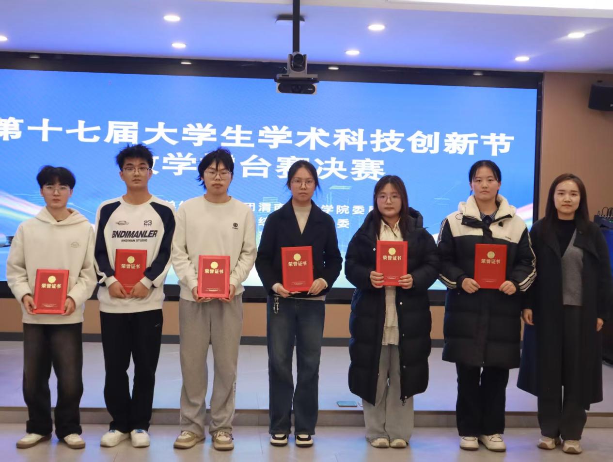 经过激烈角逐,最终外国语学院“从容应队”斩获一等奖,数学与统计学院“深藏不露队”、马克思主义学院“HLM队”获二等奖,人文学院“你不对我队”、计算机学院“三元一次方程队”、环境与生命科学学院“指望夏戈队”获三等奖,与会领导和老师为获奖队伍颁发证书。