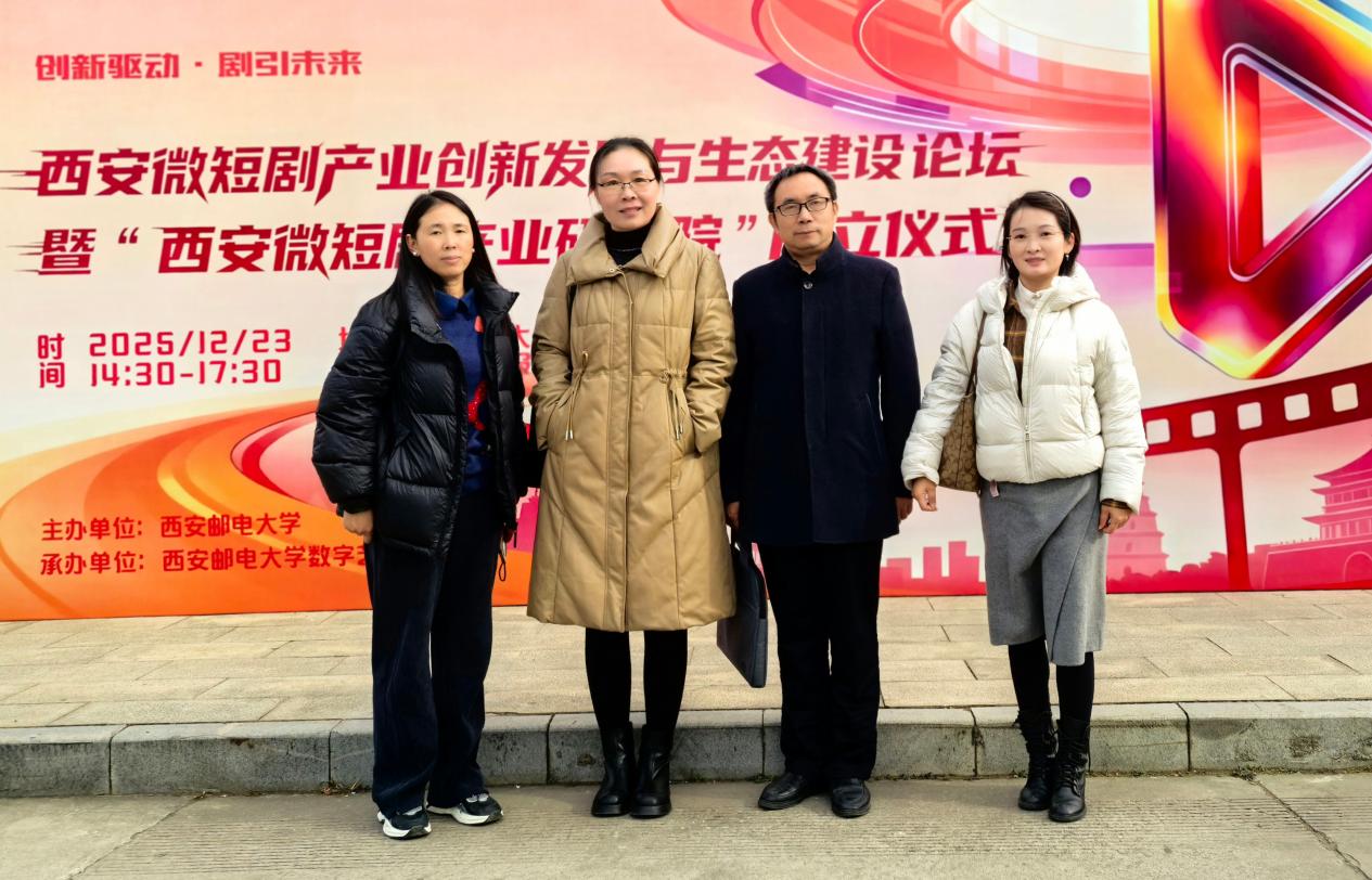 12月23日,由西安邮电大学主办,该校数字艺术学院承办的“西安微短剧产业创新发展与生态建设论坛暨西安微短剧产业研究院成立仪式”在西安邮电大学逸夫报告厅成功举办。渭南师范学院传媒学院受邀参加论坛,院长林关成、副院长侯君奕及专业负责人程昌华、张鸽舞出席活动,深度参与产业交流与学术研讨。渭南师范学院传媒学院被纳入西安微短剧产业研究院成员单位,林关成被聘为西安微短剧产业研究院专家委员会副主任委员。