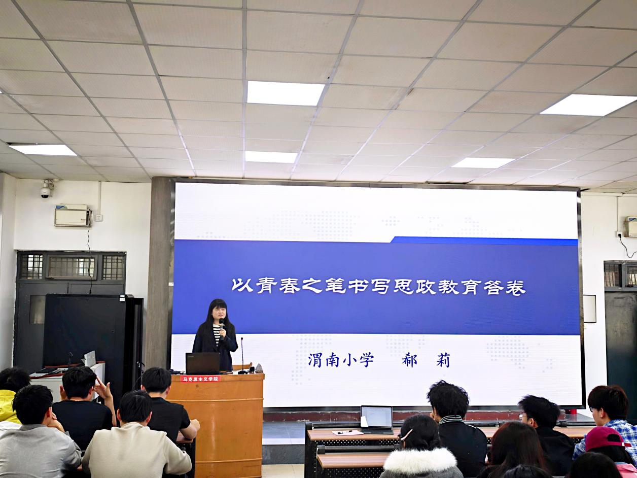 3月31日下午,马克思主义学院特邀全国模范教师、享受国务院政府特殊津贴、正高级教师、渭南小学党支部书记兼校长郗莉在1101教室作题为“以青春之笔书写思政教育答卷”的专题报告。2025级思想政治教育专业全体学生参加。报告由思想政治教育专业负责人周韶尉主持。
