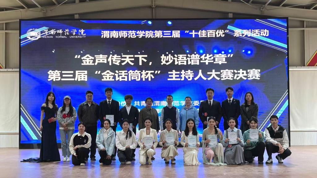 4月2日下午,由共青团渭南师范学院委员会主办,人文学院团委承办的我校第三届“十佳百优”系列活动—“金话筒”主持人大赛决赛在朝阳校区红旗大礼堂举办。党委宣传部副部长石明、校团委副书记任晓婷、人文学院党总支副书记王昱等出席活动。评委由渭南师范学院学报编辑部编审詹歆睿、校团委组织宣传办公室副主任伍萌、莫斯科艺术学院团委副书记崔萌担任。