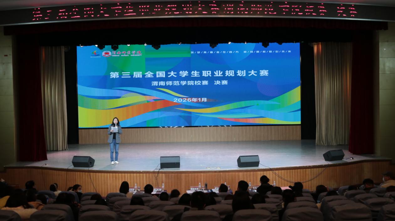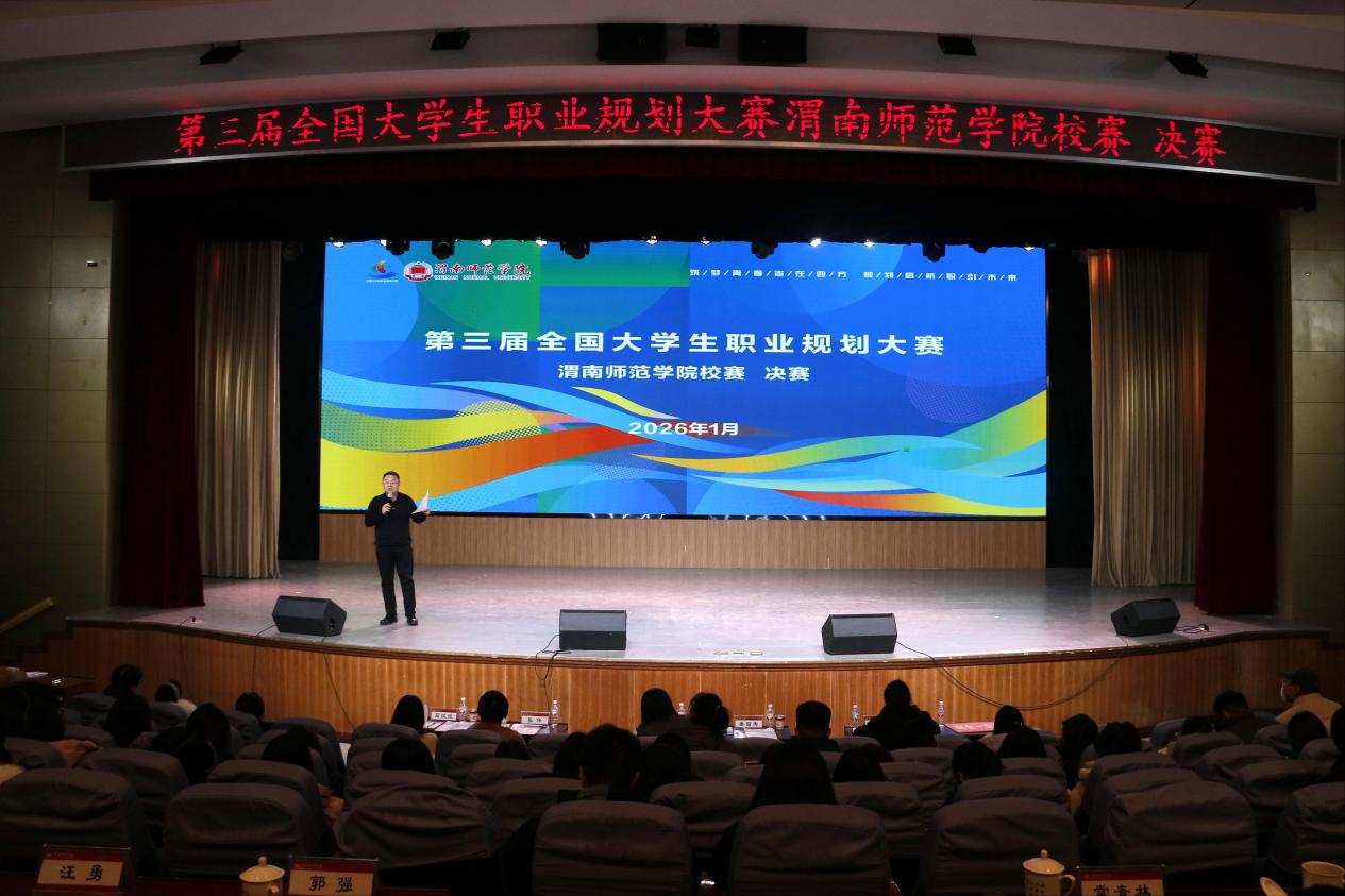 本次大赛以“筑梦青春志在四方,规划启航职引未来”为主题,自启动以来,得到了全校各二级学院的积极响应和广大学生的踊跃参与,共有一万余名学生参赛。大赛分为成长赛道和就业赛道两个赛道,经过前期15个二级学院初赛、校级复赛,最终12名选手晋级校级决赛。本次比赛邀请西北大学就业创业指导服务中心常务副主任丁莹莹、陕西铁路工程职业技术学院就业指导中心主任姜留涛、陕西丰泽实业有限公司人力资源部经理吕陇苹、中国移动渭南分公司人力资源部张伟、渭南荣耀科技传媒有限责任公司行政主管石炎炎等5名校外专家担任大赛评委。
