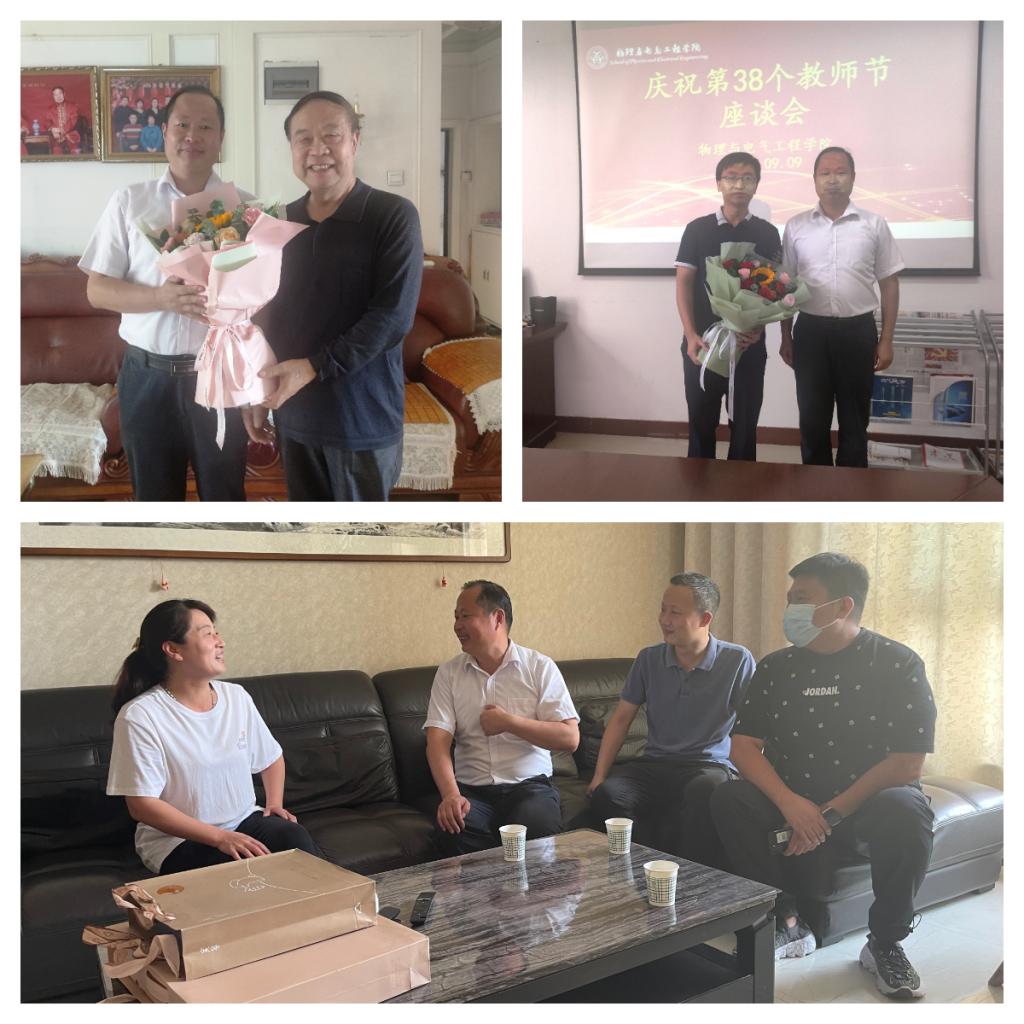 在第38个教师节来临之际,学校组织开展了教师节慰问活动。校长、党委副书记张守华,党委副书记、纪委书记肖耀刚,党委副书记韩小卫、汪勇、袁亮,党委委员、副校长卢爱刚、王菊霞、常青林、曹强,党委委员凌朝栋、李明敏分别带队走访慰问了部分退休老领导老同志以及教师代表,感谢各位老师为学校建设和发展所做出的贡献与努力,并代表学校向他们及广大教职员工送上了诚挚问候与节日祝福。