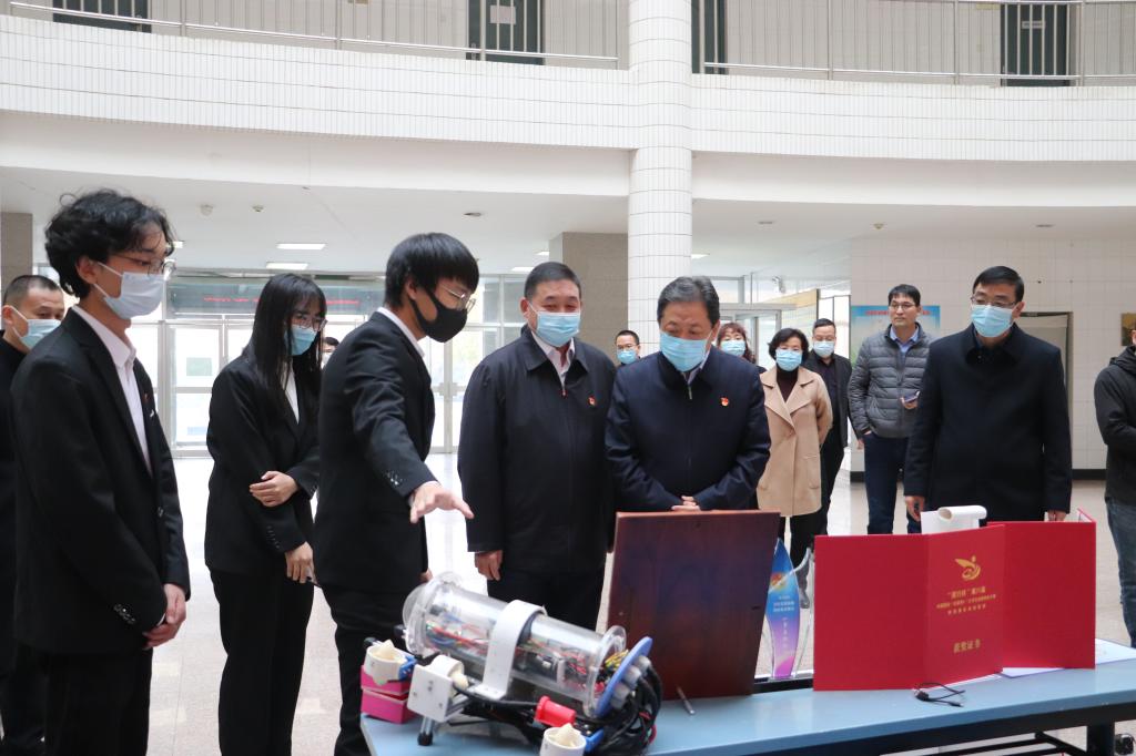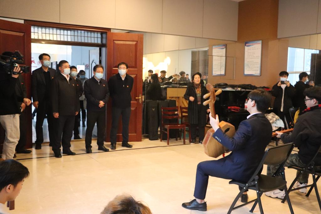 报告会后,在党委书记卓宇、校长张守华陪同下,樊维斌一行实地查看了我校陕西省X射线检测与应用研究开发中心,在经过莫斯科艺术学院时,樊维斌看到大学生老腔艺术团成员们正在排练的传统老腔《将令一声震山川》、师生大合唱《美丽新渭南》等节目后,他对学校支持地方非物质文化遗产和助力文明城市创建艺术创作给予充分肯定。(通讯员 晋彤 审核人 李明敏)
