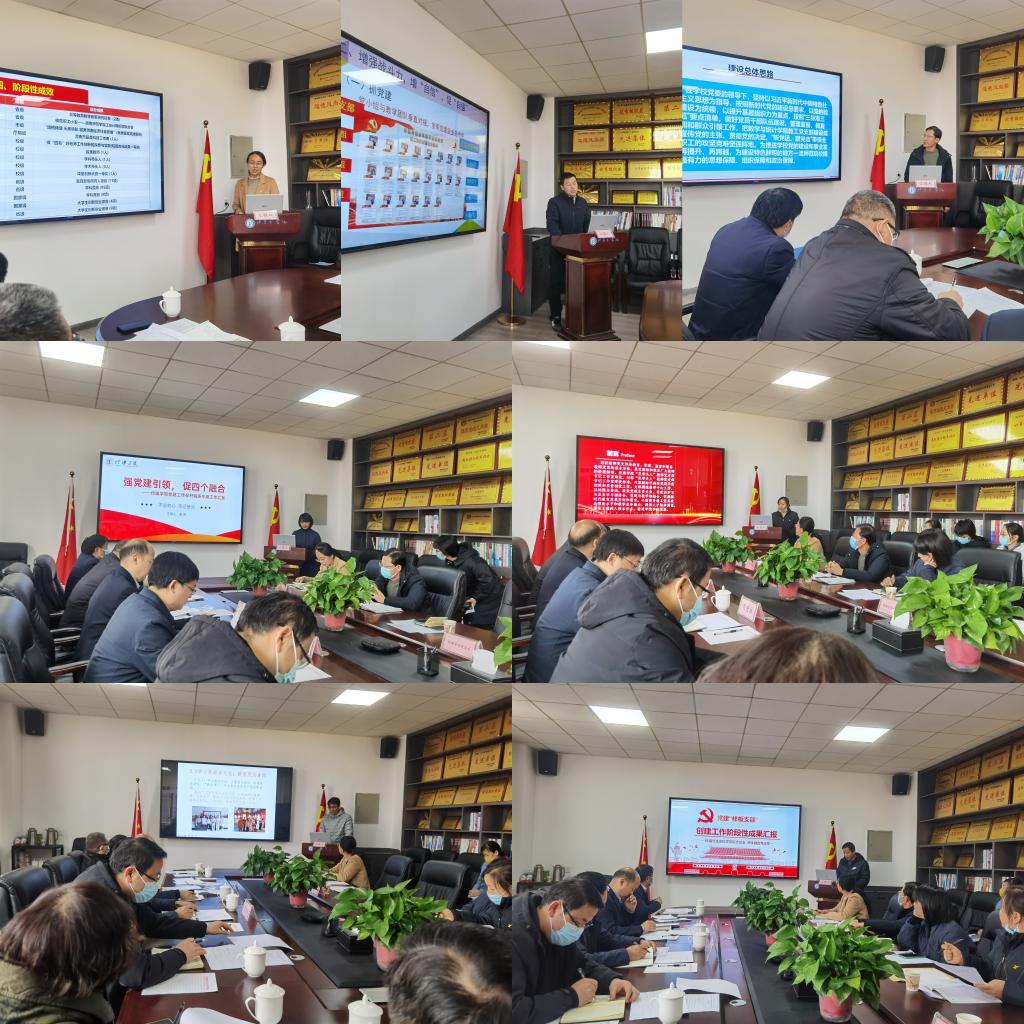 会上,省级、校级党建工作标杆院系、样板支部和“双带头人”教师党支部书记工作室负责人对标新时代高校党建“双创”工作重点任务指南和“双带头人”教师党支部书记工作室建设标准,分别就创建工作举措、阶段性成果、党建品牌打造、存在的问题及努力方向等方面分享交流经验,并综合评估各创建单位建设成效,进行现场评价。