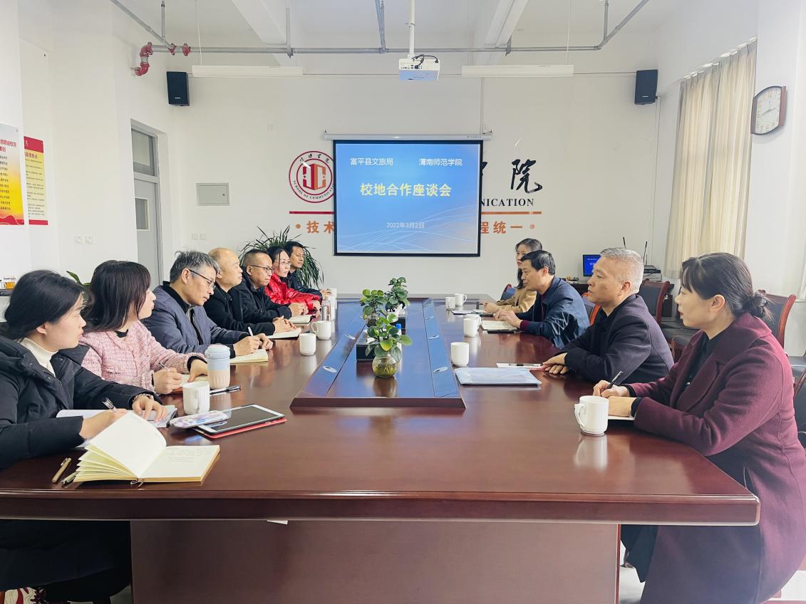3月2日下午,富平县文旅局局长卢战强一行来我校富平校区洽谈校地合作事宜,副校长卢爱刚主持座谈会并讲话。