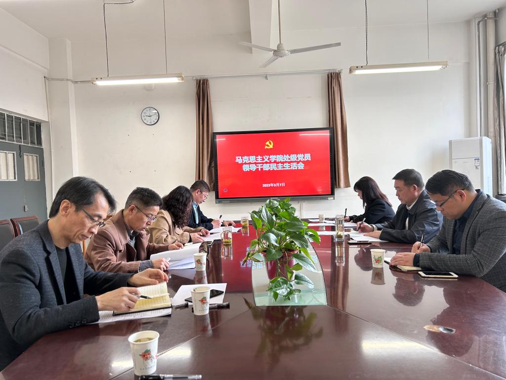 3月7日上午, 马克思主义学院党总支召开2022年度处级党员领导干部民主生活会。党委书记卓宇到会督导,督导组成员董康军、张晓多参加指导。卓宇表示,马克思主义学院领导班子能按照学校要求,积极撰写、完善对照检查材料,批评与自我批评氛围较好。他要求,班子和班子成员要在会后进一步深入查找问题,把自己摆进去、把职责摆进去、把工作摆进去,彻底剖析,形成问题清单,细化整改措施,确保整改成效落实落地。