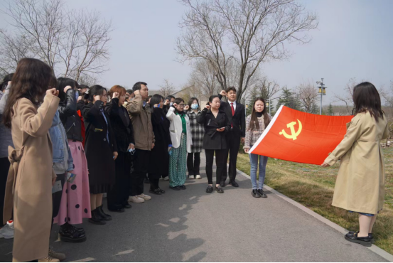在习仲勋故居,教师们看到故居内朴素的陈设,艰苦的条件,更加深刻地认识到习仲勋同志志存高远,心系群众,胸怀国家,用自己光辉的一生印证了毛泽东同志对其的高度评价——“党的利益高一切”,同时也为习仲勋同志“战斗一生,快乐一生,天天奋斗,天天快乐”的精神所振奋和鼓舞。全体教师党员面对党旗整齐列队,举起右拳,重温入党誓词,牢记初心使命。