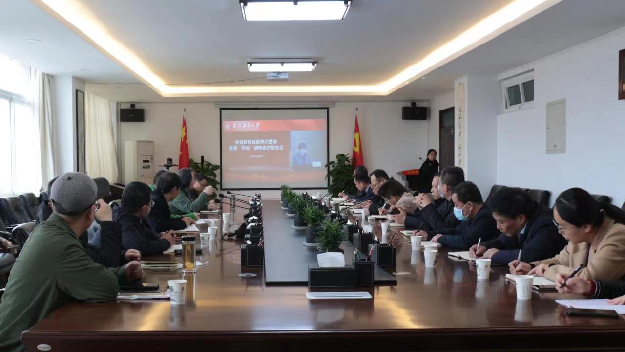 3月23日上午,学校党委组织党委有关部门负责人,机关党委,各党总支、直属党支部书记等在线参加全国人大代表、西北工业大学党委书记李言荣面向全省教育系统作的全国两会精神宣讲报告会。