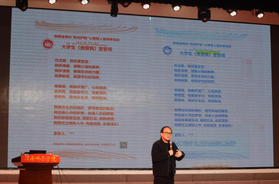 郑林科宣布渭南师范学院第八届“阳光护航”心理育人宣传季实践活动正式启动。