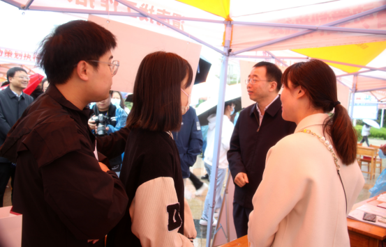 我校校长、党委副书记张守华,党委副书记、纪委书记、监察专员肖耀刚,党委副书记袁亮,党委委员、副校长常青林,渭南市人力资源和社会保障局党组成员、副局长董建明,渭南市公共就业和人才交流服务中心主任马会斌等领导亲临招聘会现场指导,与用人单位、参会学生亲切交谈。张守华向来校招聘的单位表示欢迎,对返校招聘的往届校友表示感谢,对应聘的毕业生表示勉励,希望学校与各单位加强联系与协作,进一步完善校地、校企合作机制,为学生搭建良好的就业、实践平台,为企事业单位发展提供优质人才资源。