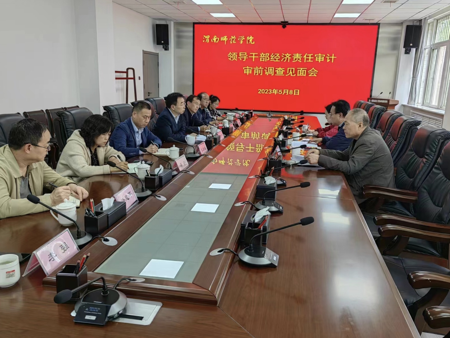 5月8日下午,我校领导干部经济责任审计审前调查见面会召开,陕西省审计厅民政社保处处长李勇,二级调研员左毅,二级主任科员刘皓月,校长张守华出席会议。会议由副校长曹强主持。