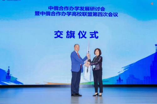 闭幕式上,大会宣布渭南师范学院为中俄合作办学高校联盟2024-2025年轮值主席单位,深圳北理莫斯科大学党委书记朱迪俭向渭南师范学院副校长王菊霞授旗。王菊霞在作表态发言时表示,轮值期间我们将在联盟的指导下,竭诚为联盟成员做好服务和联络工作,为大家搭建合作交流平台,携手联盟成员单位共同促进中俄合作办学高质量发展,共同擘画中俄合作办学新蓝图。