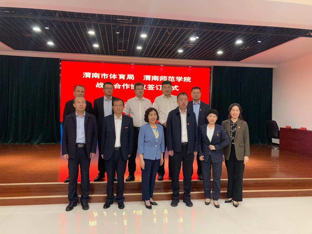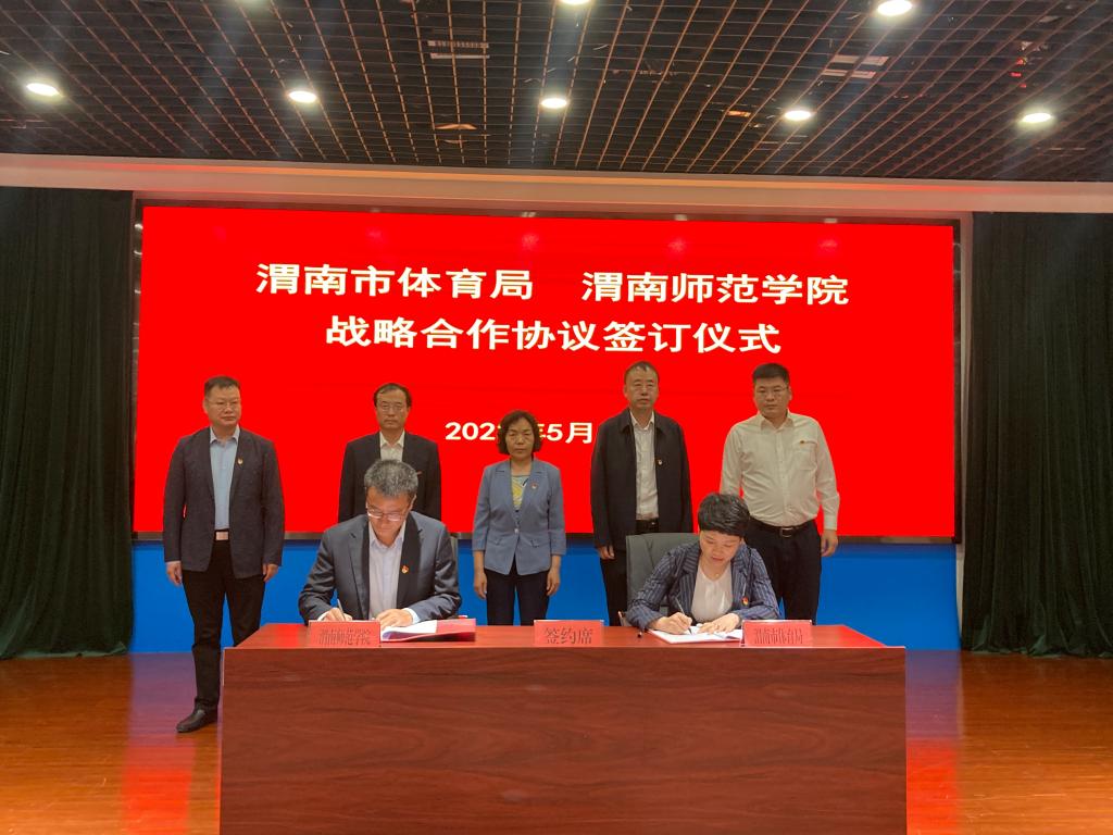 5月23日下午,我校与渭南市体育局签订战略合作协议。校党委委员、副校长王菊霞、曹强,渭南市体育局局长秦峰、副局长王晓燕、李永强,仪式由渭南市体育局党组成员、副局长郭军主持。